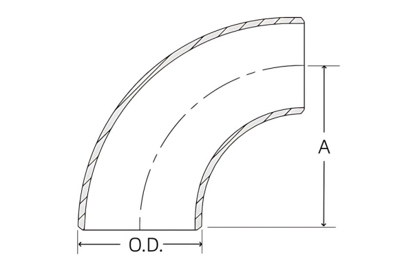 | حجم الأنابيب الاسمية | م | سمك الجدار | طويل | قصير دائرة نصف قطرها | |||